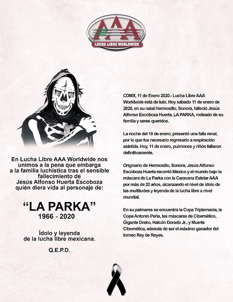 El ídolo de muchas generaciones aficionadas de la Lucha Libre, se conmocionaron ante la noticia del fallecimiento de La Parka esta noche.